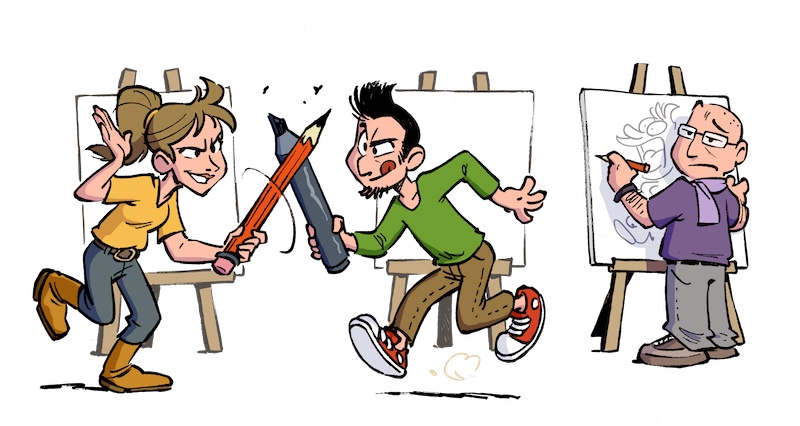 Cette expérience permet au petit Dav de faire des planches de BD, de les mettre dans un petit magazine, d'aller le vendre sur les festivals, et de rencontrer d'autres gens comme lui qui dessinent déjà, eux, et qui sont payés pour le faire !