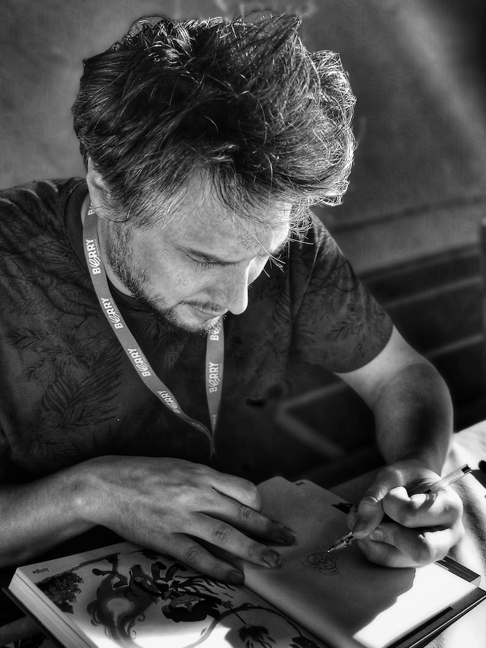 Ce jeune marseillais prouve que l'on peut être très bon scénariste et excellent dessinateur. Doué d'un talent de conteur enlumineur, il crée et anime ensuite le petit royaume ubuesque de La Nef des fous. Entièrement réalisées en couleurs directes, ses pages sont de véritables tableaux qui illustrent à la perfection ce mystérieux monde clos.